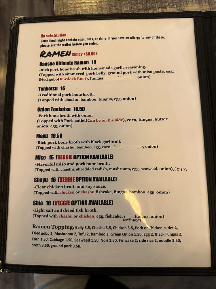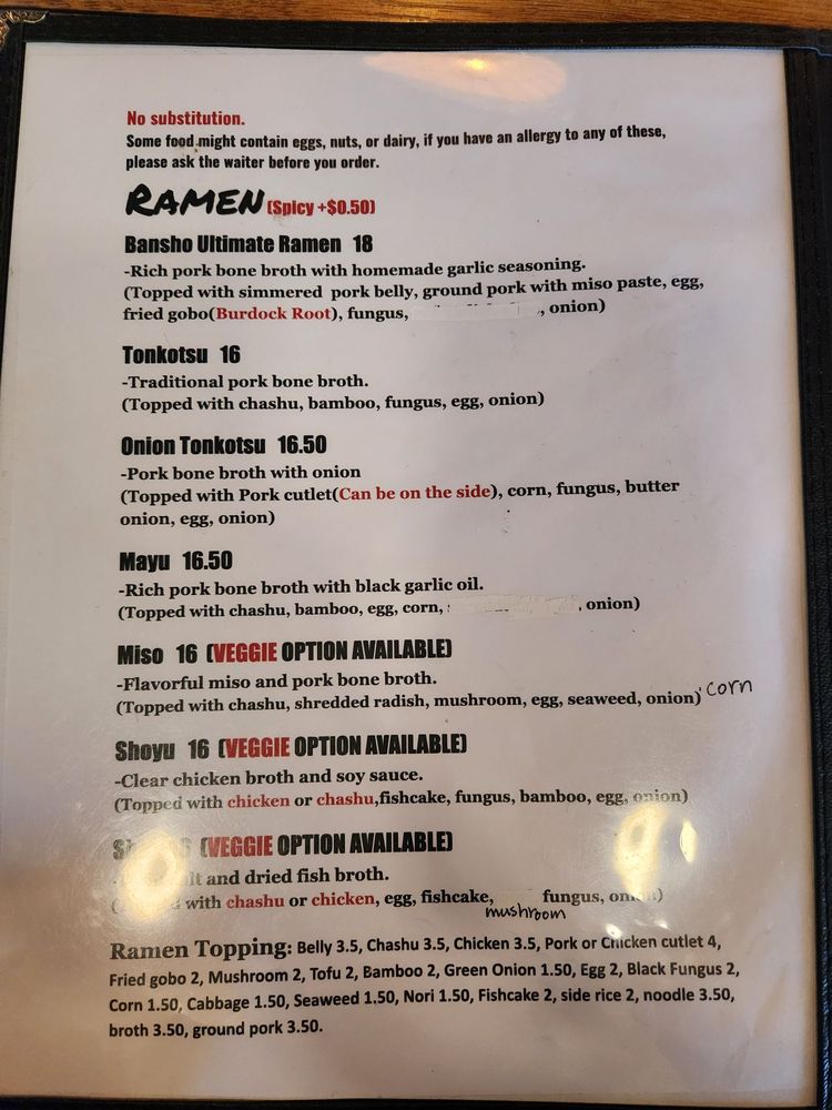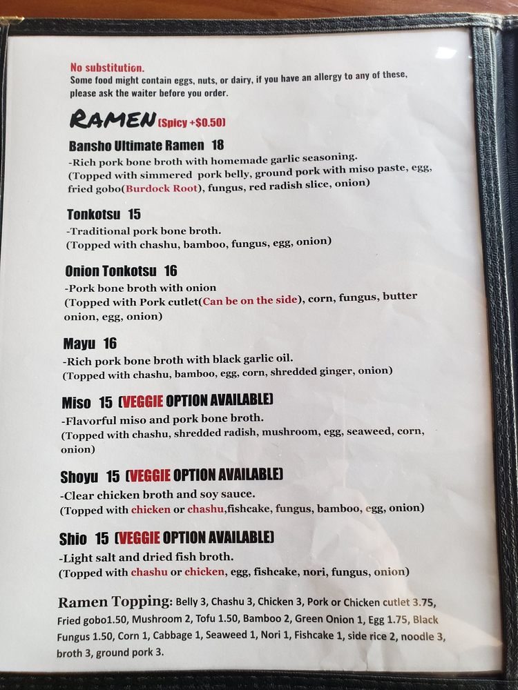 - Signature Dishes: The Bansho Ultimate Ramen delights with its rich pork bone broth and homemade garlic seasoning, while the Tonkotsu Ramen features traditional toppings like chashu and bamboo.